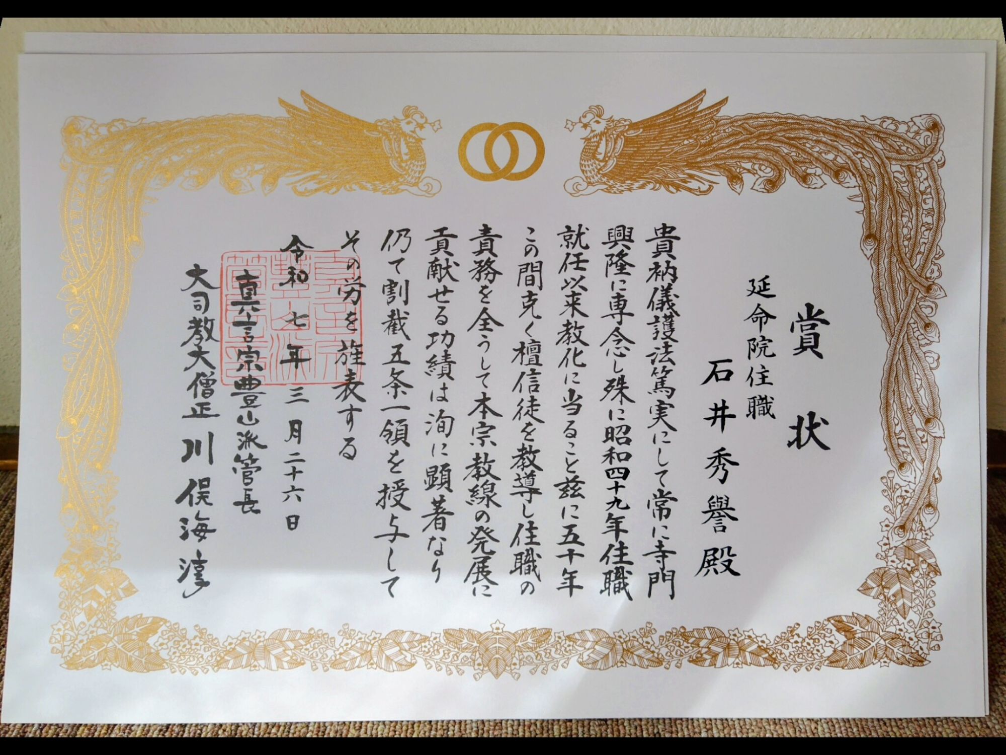 昨年は真言宗豊山派管長様よりお祝いを頂戴したり、自坊の世話人様や仲間の近隣住職様方よりお祝いの会を